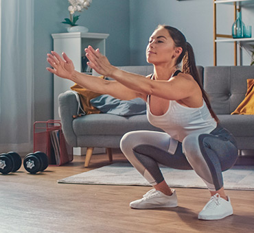 Ponte de pie de tal forma que tus piernas queden en línea recta con tus hombros y comienza a bajar como si fueras a sentarte en una silla, al doblar las rodillas tus muslos deben quedar paralelos al suelo, si quieres poner un poco más de intensidad utiliza pequeñas mancuernas o algún otro peso con las menos a la altura del pecho. Realiza 3 series de 10 repeticiones cada una.